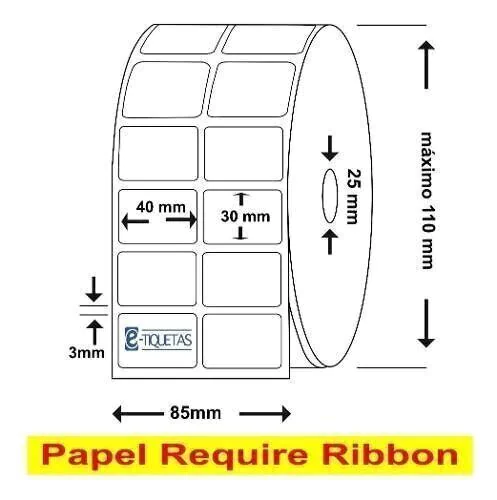 3000 etiquetas por rollo ( 1500 unidades por banda)